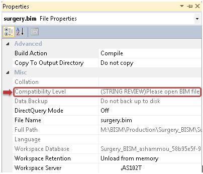 Error: (STRING REVIEW) Please open BIM file in Tabular Designer in order to view or change compatibility level (See screenshot below with error message in Compatibility Level)